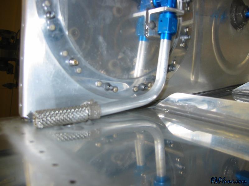Here is a view of an anti-rotation bracket as installed per plans. As you can see, it prevents the nut from working its way loose. Disregard the vinyl still protectiing the aluminum. I made the covers up well before the tanks were finished and was removed prior to installation. It was probably overkill but before I closed up the tanks, I smeared sealer around the exposed threads of the fitting too.