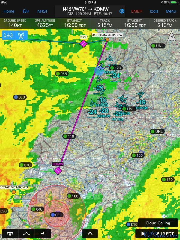 The race is on! If I couldn't beat the rain to KDMW, my backup plan was to put down in York, PA (KTHV) and wait out the weather or have someone come get me.