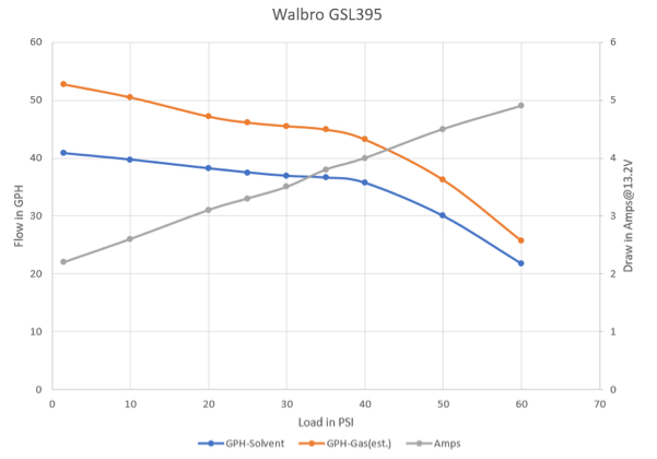 Of the three pumps tested, I cut up the Walbro GSL395 and the Delphi supplied to me by Airflow Performance, which are quite different internally. A Walbro tech told me that all of the GSL-series pumps would be very similar inside, with the differences being in gerotor thickness, motor windings, etc., so I decided to keep the winning GSL414 intact as a spare and for demo-ing my test rig at the next EAA chapter 124 meeting here in Santa Rosa, CA.