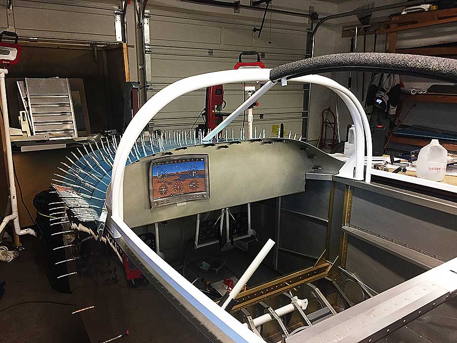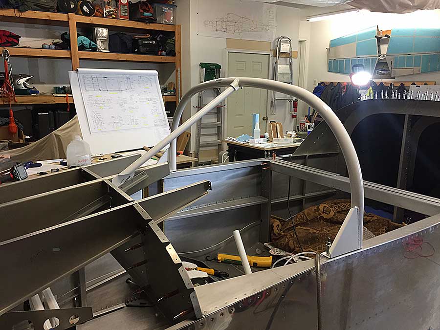 Here's the roll bar cleo'ed on and the top skin in place...I couldn't resist putting the canopy frame in place just for grins.