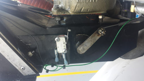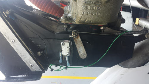 The carb heat box already had a convenient mounting location so I used a #8 screw to mount the new assembly near the carb heat actuator. By adjusting the assembly a little, when I move the carb heat knob the carb heat actuator moves the roller lever on the switch.