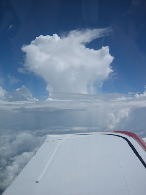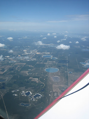 The trip over to Florida brought a mixture of disappointment tempered by awesomely beautiful sights. I was looking forward to seeing old haunts along the Mississippi River and Delta, but the clouds blocked our views down. But, the spectacular sights of watching the Valkyrie glide among the giant cues made up for the loss. I was thrilled to see part of the Wakulla Karst Plain south of Tallahassee. It would have been fun to buzz around and look for the various, famous land-based and submarine springs ( http://research.gg.uwyo.edu/kincaid/...a/wakhydro.htm), but worries about building convective activity kept us moving eastward.