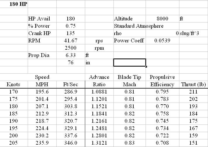 Very good, George. You're spot-on with that comment, but above about 202 mph, we don't even get 78% out of this prop. And these numbers don't account for fuselage blockage effects.