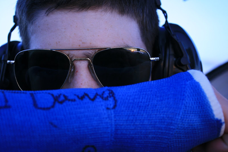 Well, to get really good at speed skating you train all year, on rollerblades in the summer. Long, fast rollerblades, and if you hit a slick spot on the track, you go down hard. Steven had a tough week - he found the slick spot. He broke a bone in his wrist and shattered 3 teeth. He had to endure 3 root canals before the broken arm was set. So when I wandered down to say "hey" tonight, I expected him to be on the couch watching TV and bumming. Not the case. I walk in and he pounces on me and says "Can we go flying?" His mom gives the nod, and we are off to Anoka.