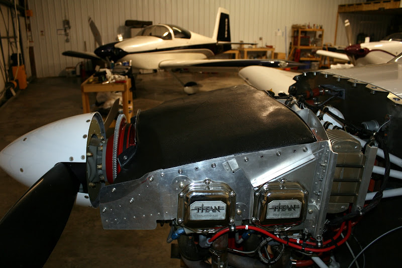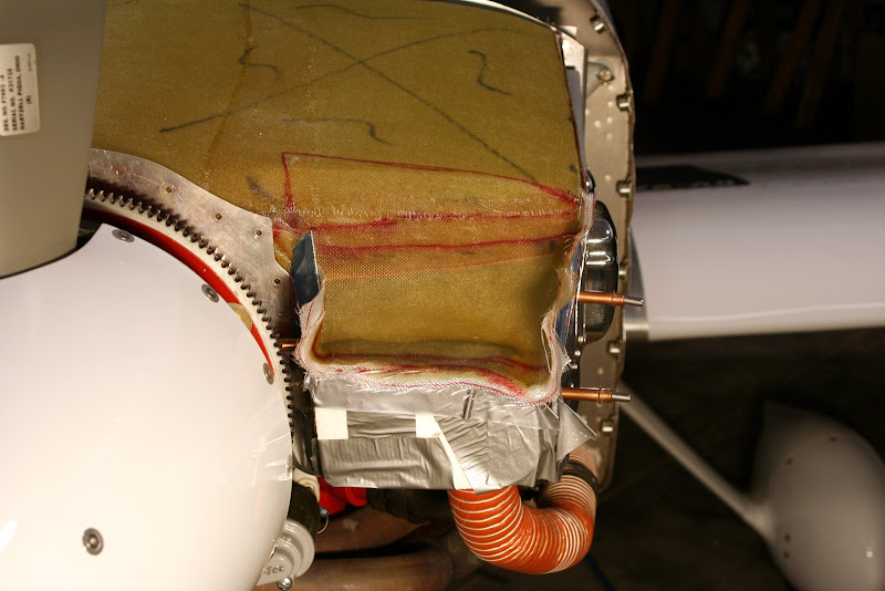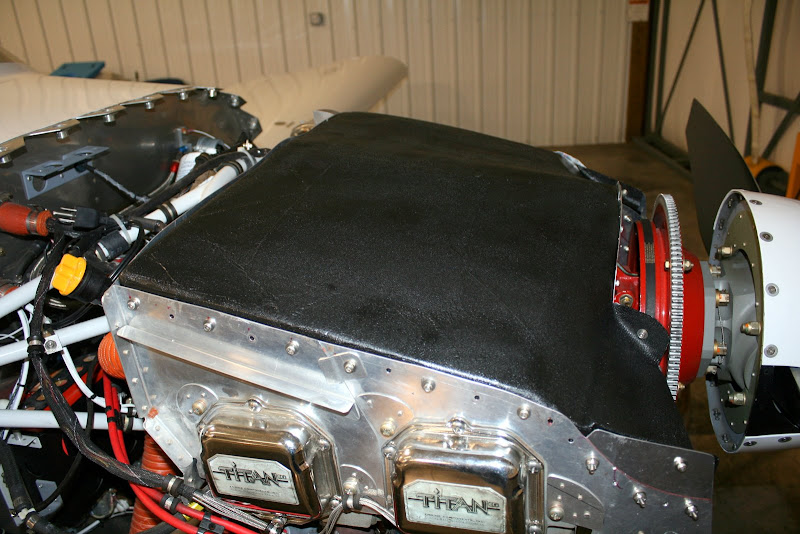 I sealed the edges with black silicone and it looks pretty nice. How does it work? Well, it does seem to cool a bit better. On hot days, I can climb longer before I hit 400 CHT and back off. The cylinder temps are nicely evened out with the exception of #1 that needs a blocker(this is in work). Speed has increased 10 kts. Alex P and I have decided that you always claim 10kts on a drag reduction project. In reality I don't think it made a difference b/c the inlets were not resized. That may be the next project, so no real speed increase at this time.