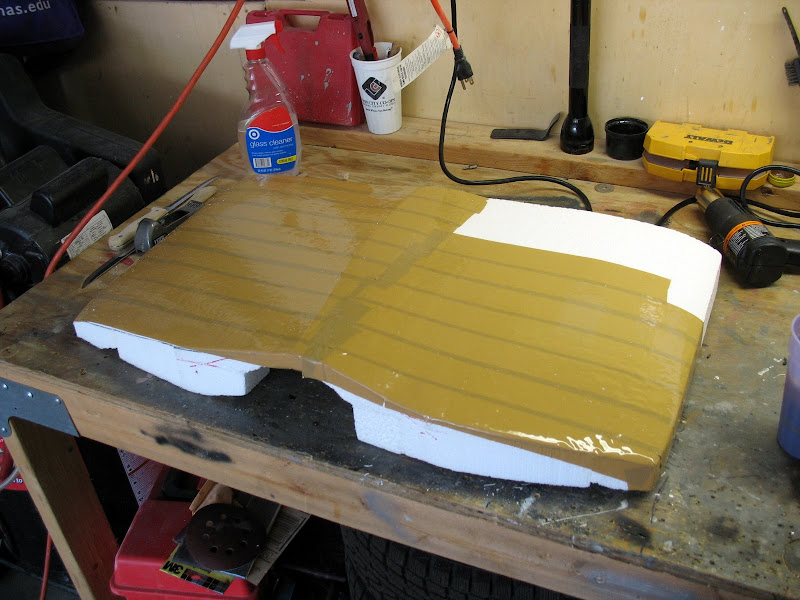 I mixed up the EZ Poxy (good thermal properties) and applied 5 layers of 9 oz cheapo Fg cloth I found on sale at Av Depot.