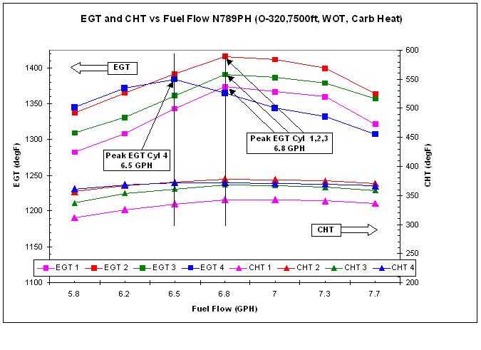 Actual data from my carbed O-320 with dual EI. Runs cool and efficient. I can get similar results by running with carb heat or by cracking the throttle a bit. My "GAMI spread" is .2-.3 GPH with #4 being the only cyl that does not peak concurrently. I usually settle in at 150KTAS ~6.0 gph and 60-70degF LOP for cruise.