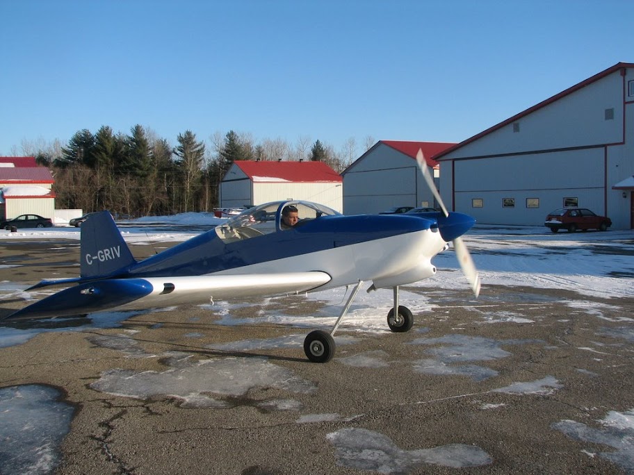 I plan to finish the wheelpants and fairings this spring. I will also add some vinyl stickers to finish the exterior. I went back for a thorough inspection on the aircraft and especially the engine and everything was still where it's supposed to be. When the temperature gets warmer, (we almost broke a record last night at -34°C) I will go back for a 2 hrs flight to continue the engine breakin.