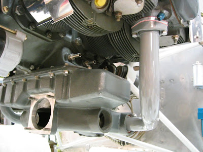 "IO" sump fitted to "O" top end. Note intake pipe adapter.