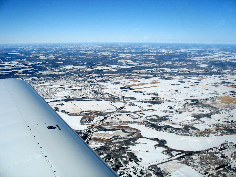 Since the flight up was over some desolate terrain, I picked up flight following on the ground at Anoka. Lots of cold and snow down there, but the cabin was toasty with the bright sunshine and heated seats.