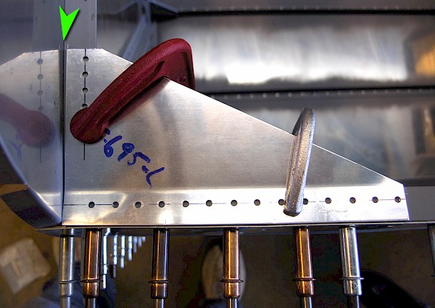 I'm ready to drill the holes into longerons and firewall stiffeners using the F-695 Gusset as a drill guide and noticed this mis-alignment (the green arrow). Before I drill this dude, has anyone else experienced this? It's the same gap on both sides.