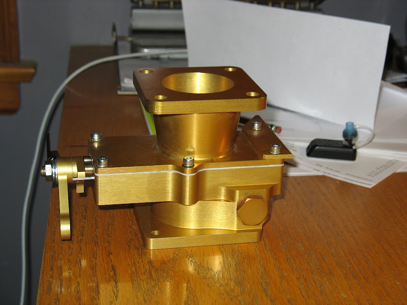 I am working out the installation details now. Hangar-mate supreme Alex P engineered an adaptor to match the height of the Rotec TBI to the carb, allowing use of the same airbox. it was machined this week. Cable rework will come next.