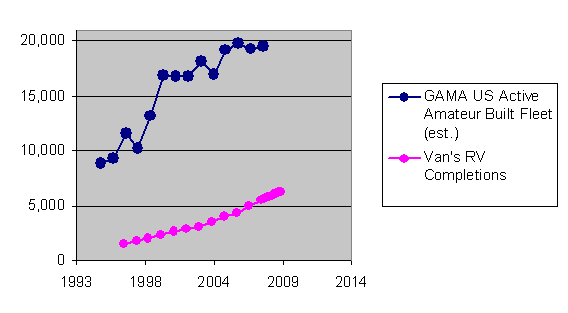 I guess I was being a bit optimistic when I guesstimated that Van's had 50% of the market. I was basing it on the OSH quote about RV attendance. According to GAMA, it is in reality probably barely 25%. I wonder what the remainder of the 75% is...?