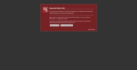 Here is a screen grab of the blocking page due to malware that Paul message identified. It identifies the problem element as being from "thingre.com"