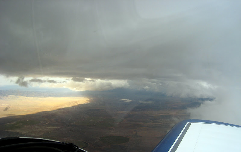 Well, yesterday was an adventure and I had a lot of fun, but we ultimately ended up back in Winnemucca. I started the morning with a little frost so Paul and Louise removed my cover and let me dry (or, in this climate, more properly sublimate) off a bit. They "worked the weather" inside the FBO. Finally, they agreed that it was time to go and off we launched. The weather looked okay at our destination and I had enough fuel to make it there and back so the plan was to go until we couldn't and return if we had to do so. That's exactly what happened. We tried above the clouds and got within 35 minutes of our destination (and 10 minutes from clear reporting airports), over my home state of Oregon, but the undercast layer had risen to above 18,000 msl. We tentatively poked into some hole but saw both times that the risk down low was too great. So, here I sit once again on the KWMC ramp.