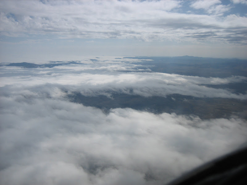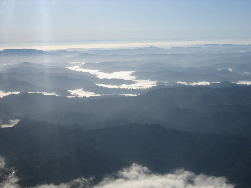 Imagine my surprise when I woke with the sunrise, staring through the large windows at blue skies over the trees! While we didn?t want to rush anyone, we sure didn?t want to miss a launch window off the coast, especially since the rest of the way to Texas was clear as a bell. The in-laws were understanding, and we were soon on our way to the airport for an 0930 departure. Fog in the valleys made for beautiful views crossing the valleys of the Coastal Ranges.