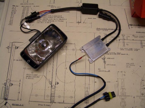 Here you can see the setup being bench tested with the HID bulb installed in the reflector that came with the Duckworks kit.