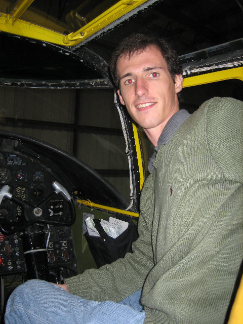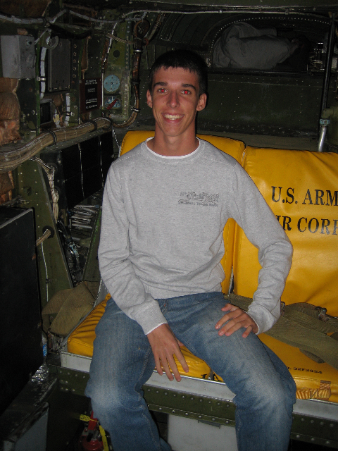 From the cockpit, looking backward at my little brother. If he looks down, he's look at the stairs we used to come up from under the belly.