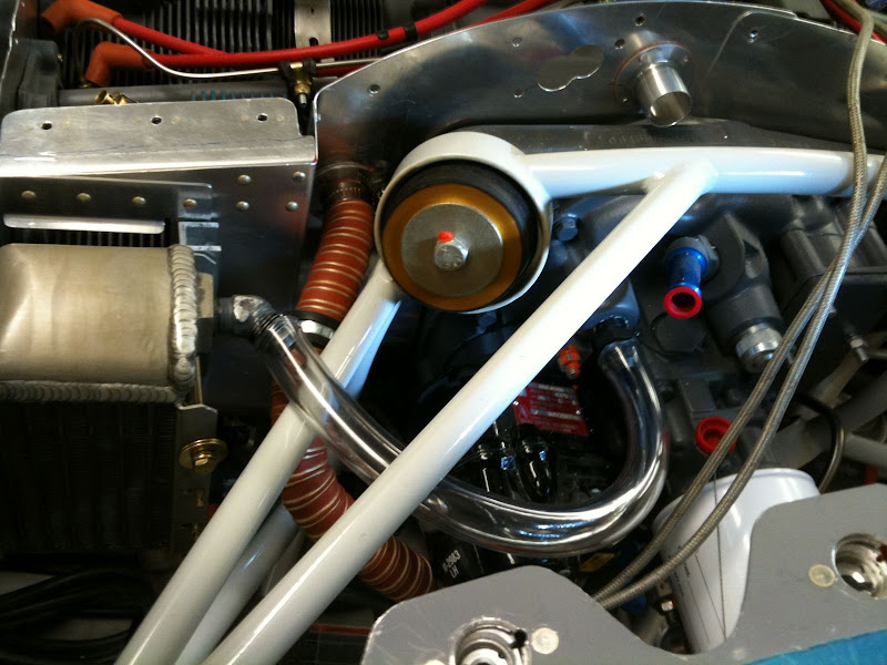 After locating the proper ports to circulate oil in and out of my engine, I have started simulating the routing of my oil hoses. I can't find anything in the plans that specify the proper way to route these hoses, so I thought I'd ask the forum for their feedback. Here are a couple of pictures of how I intend to route my oil lines. The goals are to keep hose lengths minimal yet sweeping radii, and to prevent routing near other obstructions that could abraid or induce heat (exhaust). Let me know your thoughts. Also, the red cap in front of the oil filter, can someone confirm for me that this is where the oil temp gauge is secured? This is an IO360-M1B.