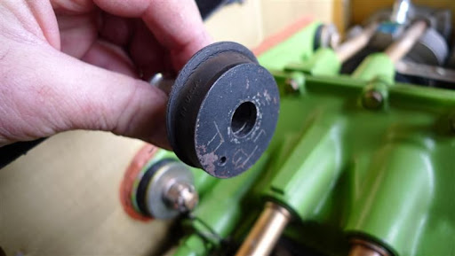 Also here's a picture showing that the rubber was starting to tear off the metal... You can see the hole for the locating pin and that the moung bolt hole is off center...