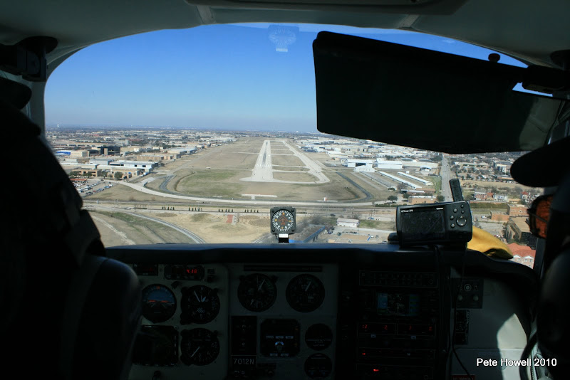 Plane tanks filled and our tanks drained - we were off on the short flight to Addison. It is a single runway airport just north of Love Field and there is a lot of traffic! Here is the view on short final.