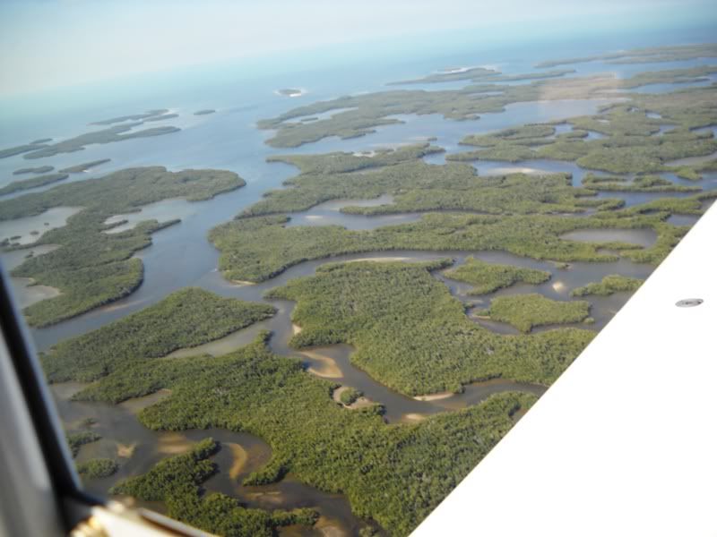 Friday morning a high pressure system continued to bless Florida with gorgeous weather. Having missed a fly out to Everglades City (X01) last weekend (sorry Eddy, the wx was miserable up here,) I wanted to take advantage of the now near perfect weather and check it out. Having Friday off, I coaxed my friend George Barth (a fellow RV-9A owner and extraordinary craftsman) into riding along in search of a good Grouper sandwich. We departed around 9:15AM using the LaBelle VOR as the single waypoint enroute to this little gem on the northwest corner of the Everglades National Park. On approaching the vicinity, the spectacular view of the 10,000 Islands appears. It?s obviously a sportsman?s paradise and I?m looking forward to a return with a boat for some serious fishing on the flats around these islands.
