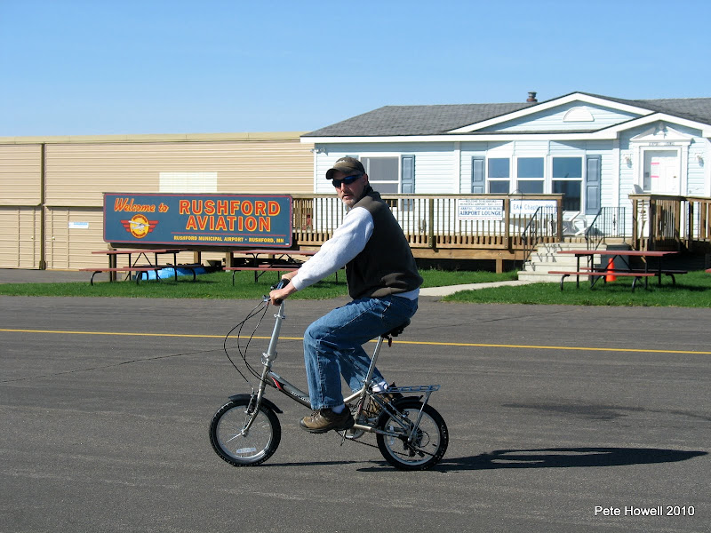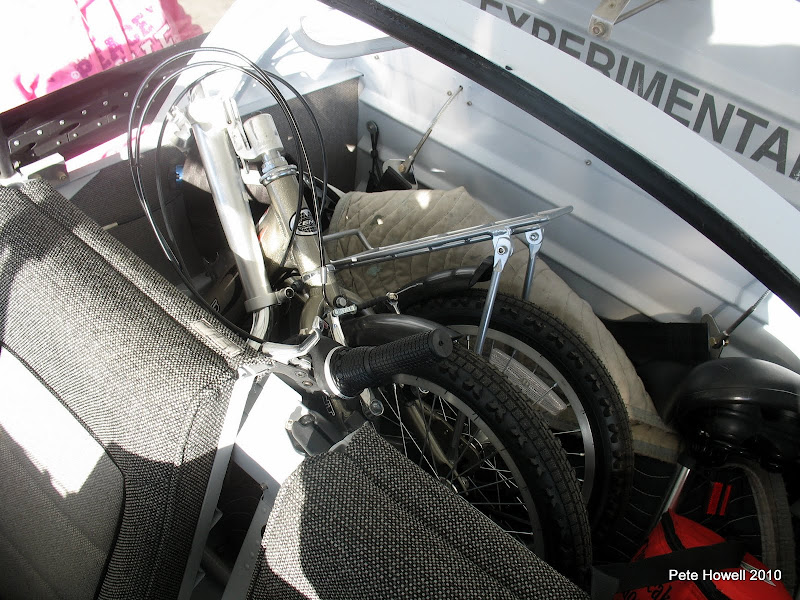 We carefully folded the bike and slid it behind the seat - it fits easily even with the spare nosewheel, O2 bottle, tools, brunch, and other stuff.