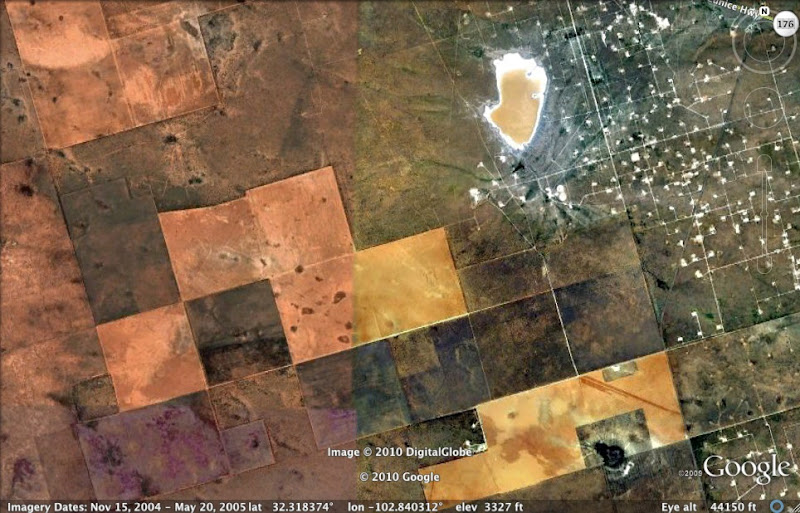 I found one of the areas I was thinking about. The photo below is from an area west of Andrews, Texas. The lines are about 15? off in the direction away from magnetic north.