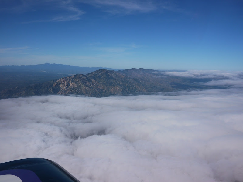 In the land of 100 or more miles between weather observation points you never know what you will get. The briefing this morning looked like there wouldn't be a cloud within hundreds of miles. Well, I wasn't that surprised to find myself above a solid undercast on the way up to the EAA LOE fly-in at Moriarty, NM. The dewpoint at the nearest station was 37 degrees F.