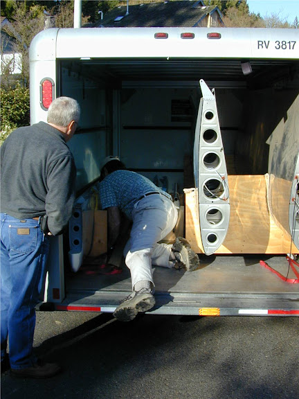 Used the same wheeled cradle that the wings had been stored in while in the hangar.