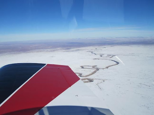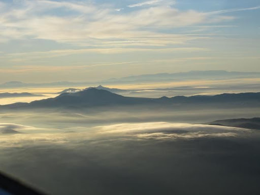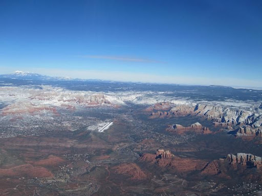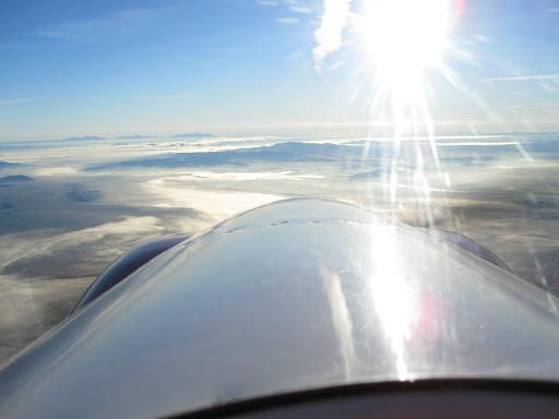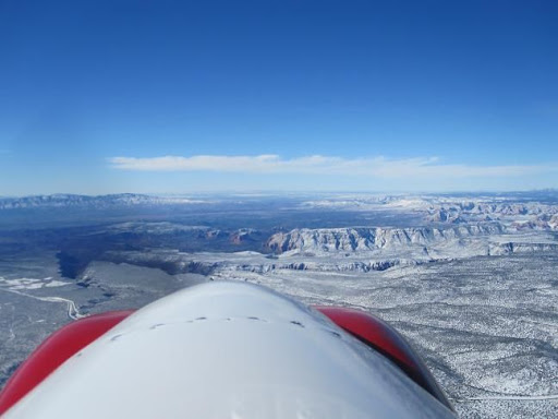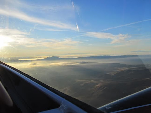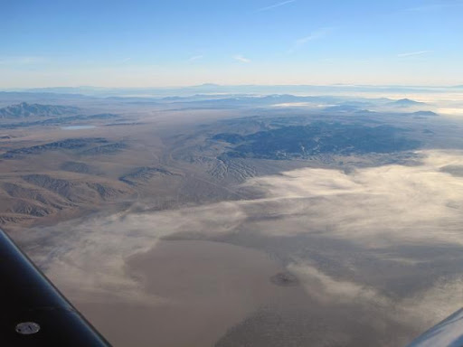 We departed around 0730. Our first leg took us from Inyokern, CA (IYK) to the DAG VOR and then to St John’s industrial park (SJN). Signs from the recent bad weather were still present in our local area. The air was fairly smooth but very cold. The scenery was amazing and somewhere along the route my wife commented that it was the coolest thing she has ever done in her life. That was a few minutes before we were VFR on top for about half hour (she did not like that).