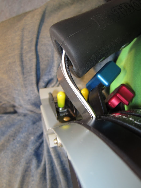 Everything about building an RV-3 comes back to building it compact. So when we wanted to use a throttle-mounted Push-to-Talk switch on the Fat-Boy grip and DJM quadrant, I really had no room for a coiled cord ? heck, there is just enough room for the grip! The solution was actually pretty simple ? I used large (3/4?) heath-shrink tubing to hold thin (24 gauge) wire to the back edge of the lever itself. This necessitated some disassembly of course, but it?s not the first (or last) time the quadrant will probably be apart. The slot in the quadrant is precisely carved to be just wide enough for the throttle lever, so I had to split the heat shrink into two pieces ? on above the quadrant face, and one below. The wires are held firmly even with the gap. The only trick is making sure the wires stay put on the back edge while you shrink the tubing (without burning your hands?.).