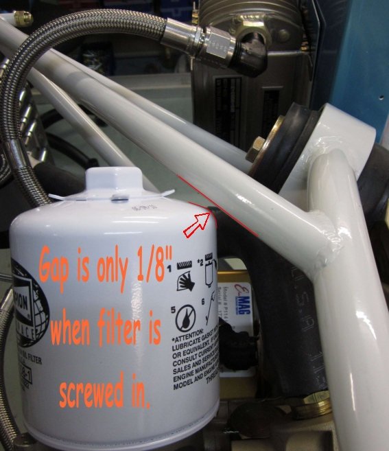 The motor has as is standart by Mattituck a 90? Oilfilter mount. Now this mount brings the top of the oilfilter as close as 1/8" to the engine mount.