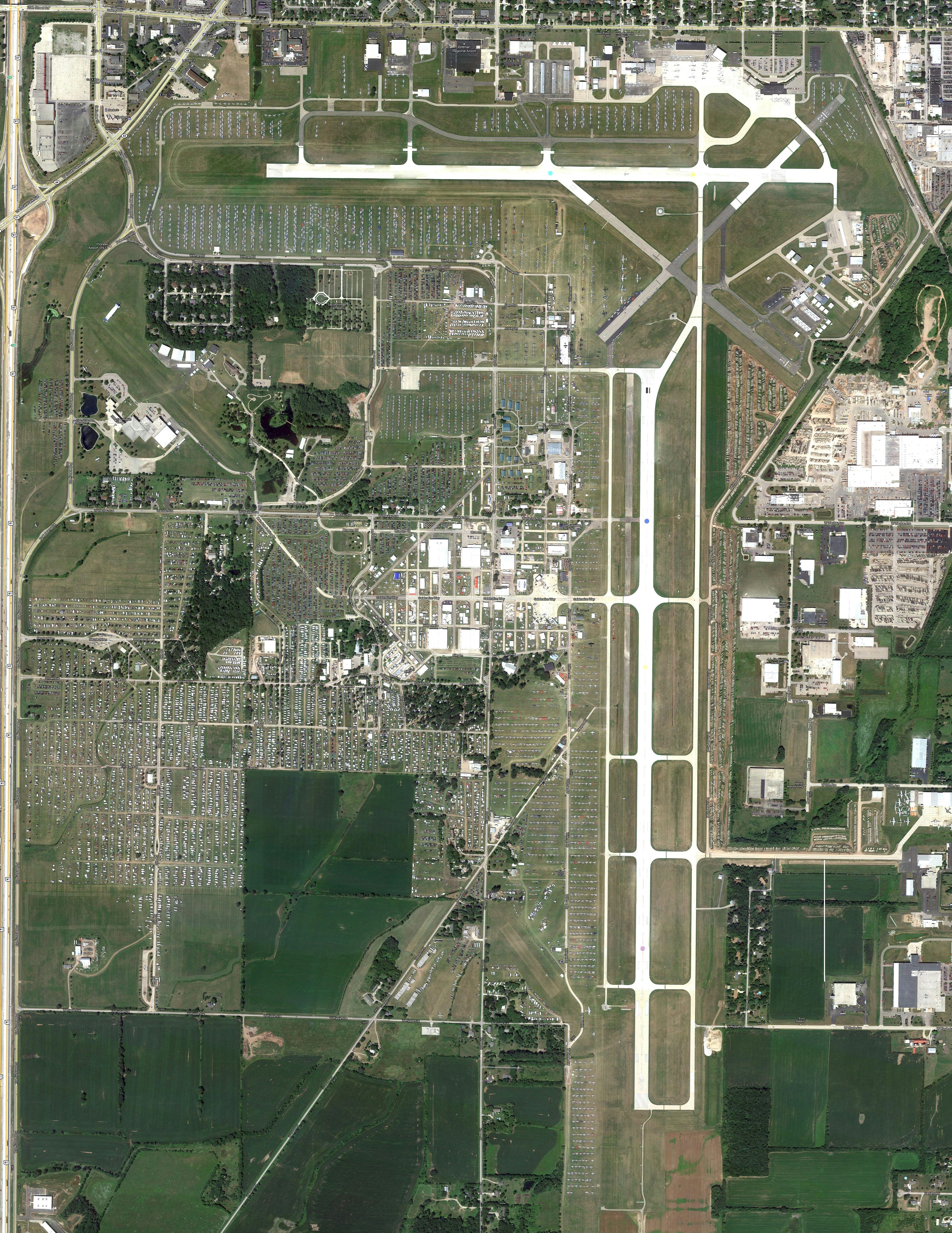 I just found out that Google was taking pictures of Oshkosh for their Google maps at the beginning AirVenture 2011. Here's a composite aerial photo from the maps. See if you can spot yourself: