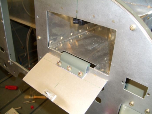In order to make the mapbox so it would detach from the panel I cut off the flanges on the box and replaced them with flanges attached with #6 screws. I also am using a hinge made for flush-mount access panels. The mapbox had to be notched to clear the hinge.