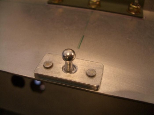 The ball is attached to the door so that it can float just a little bit to correct for any misallignment. The retainer is a stack with 0.063 on the bottom, with a large hole (bigger than the flange on the ball), and 0.032 on top with a smaller hole.