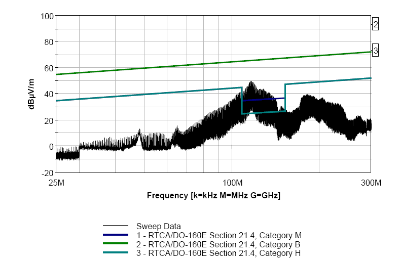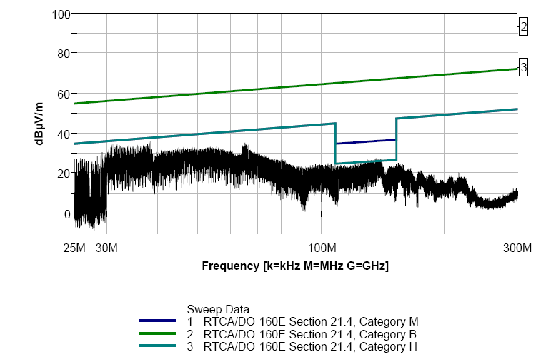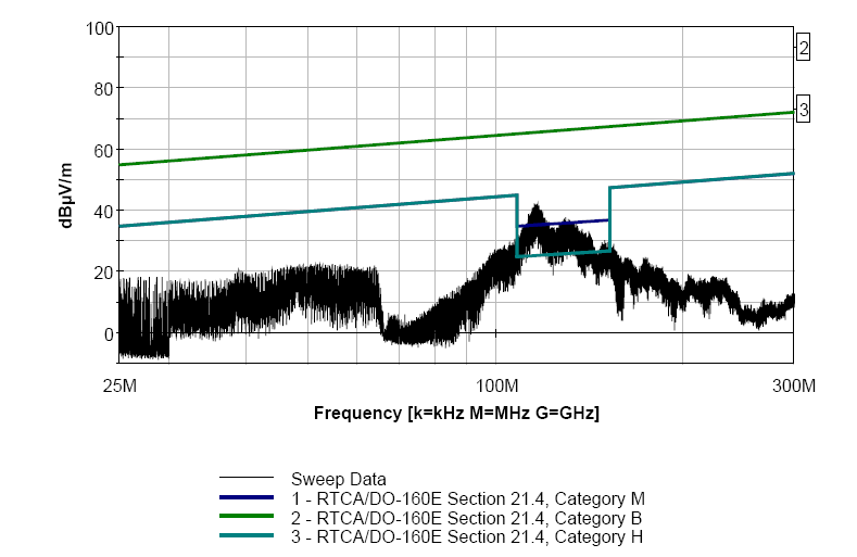 The step down in the limit lines for Cat M and Cat H are the levels that emissions need to be below to not be picked up by the radios. Cat M is the recommended level for most equipment, the extra margin of the Cat H line in the radio notch is for equipment mounted adjacent to a radio antenna.