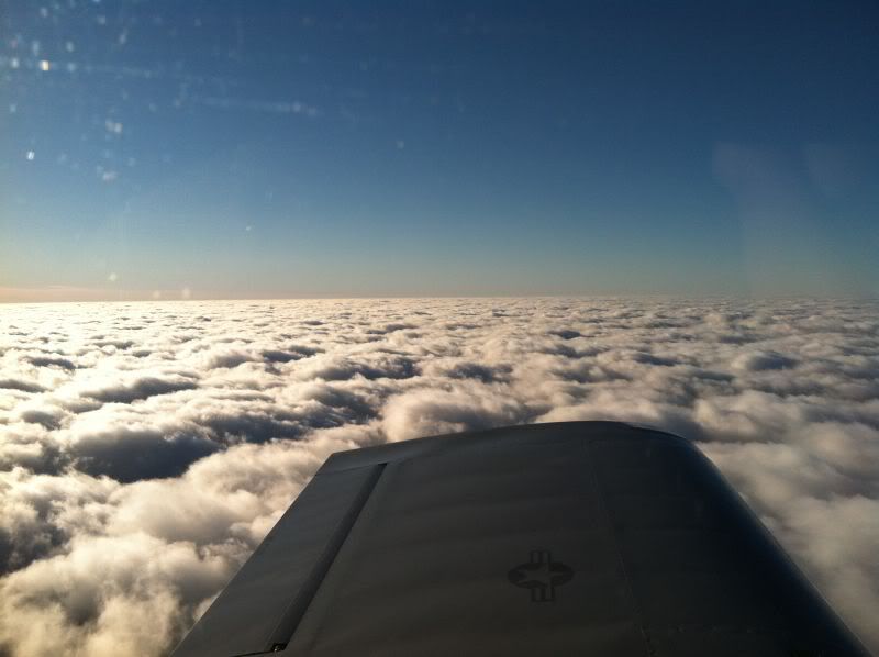 I took along a pair of gloves, just in case, and threw in a hoodie for my wife, since there's always a blast of cold air coming in from the back of the canopy. Good thing, too -- about 50 miles west of home we ran into a layer of clouds from 4000-5000', so I climbed to 6500'. My oil temp was at 170, so I figured that, as the day warmed up, so would my oil.