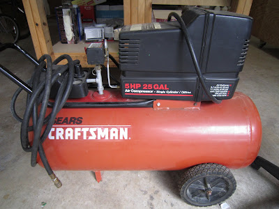 For the other 3% when I'm painting or heavy diegrinding, I run this in the backyard (different circuit plus it's noisy) with an air hose and "T" into my airline. Very cheap used on craigslist. Would love a big 240V but this setup has worked fine even for HVLP painting and everything else I've needed and it was cheap and will be easy to take to the hanger.