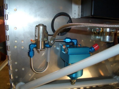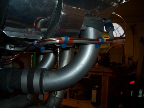 I played around with the fittings and the best routing worked out to be with the 45* at the primer distribution block and the 90* at the valve. I used cushion clamps to keep the hose away from the engine mount and the cabin heat ducting